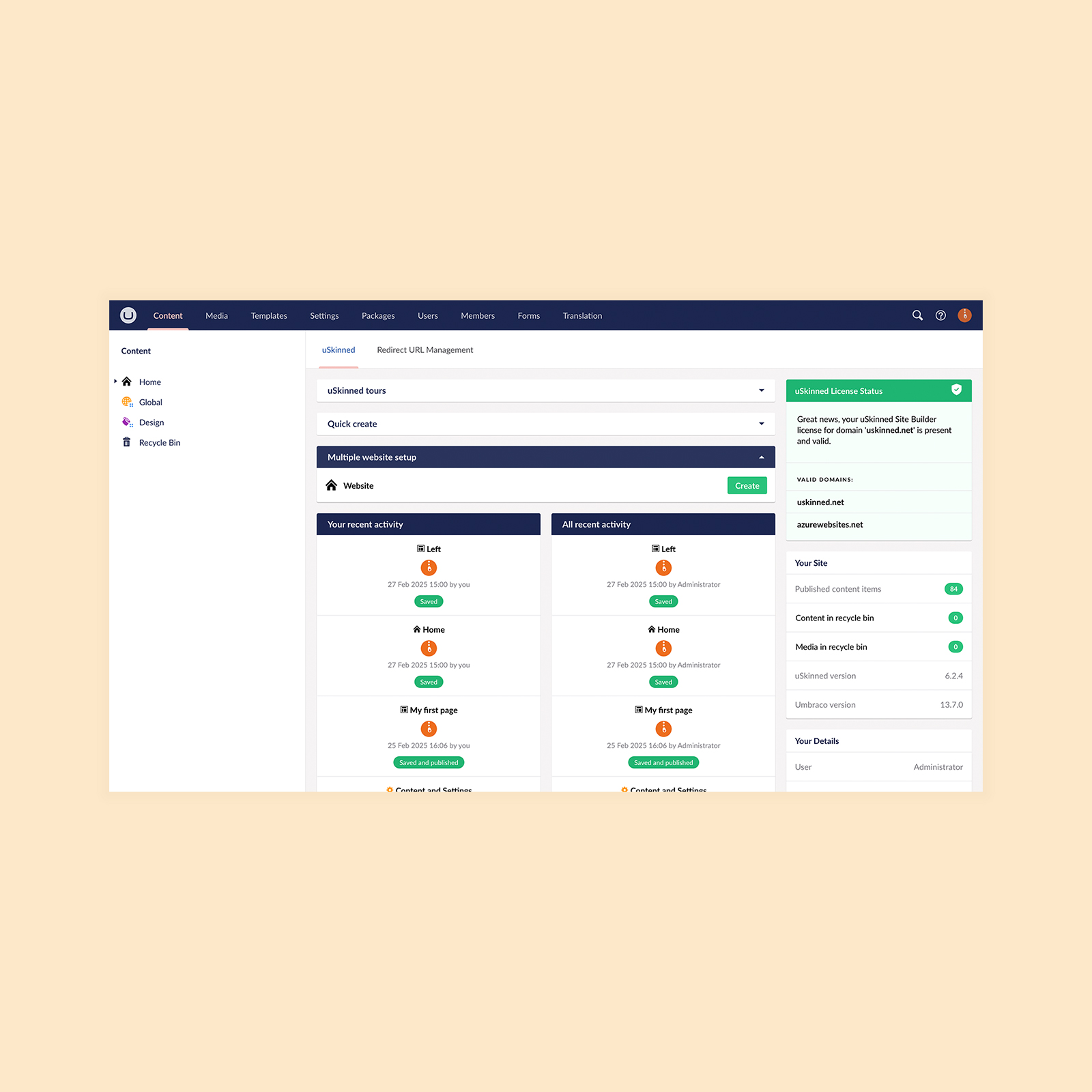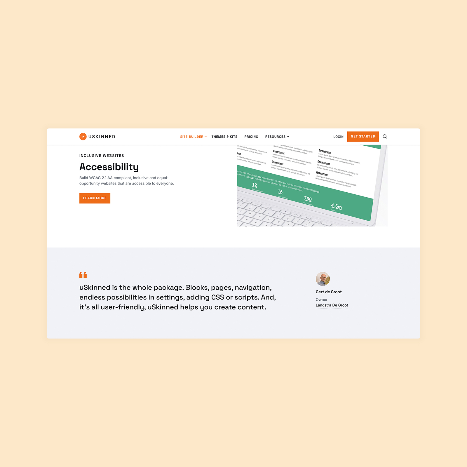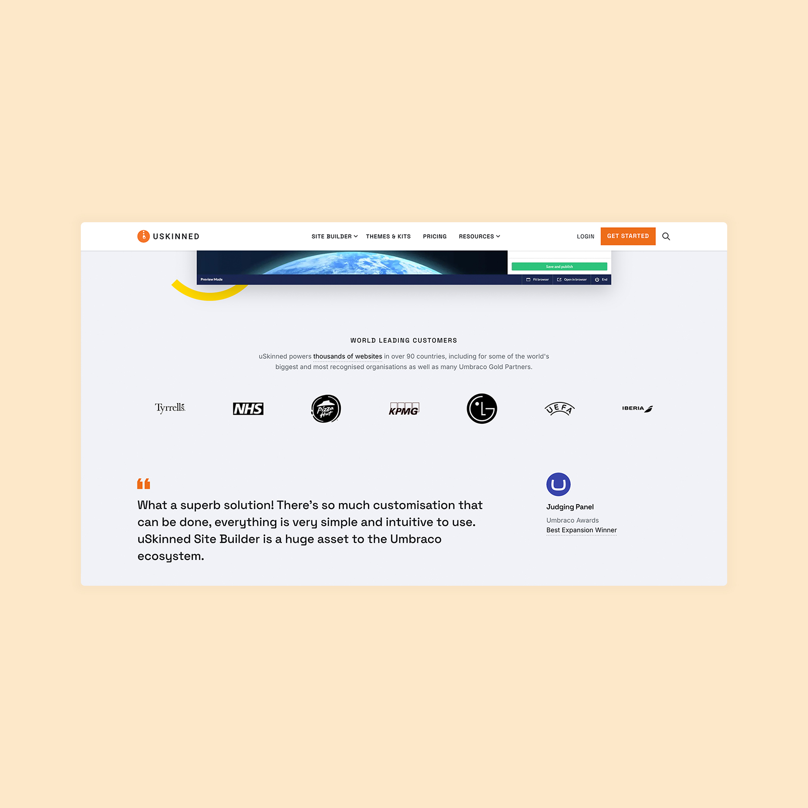 uSkinned Site Builder is the leading, award-winning all-in-one website creation platform designed exclusively for the Umbraco CMS ecosystem.